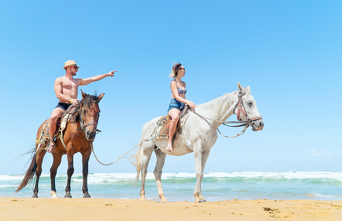 Bliss – pure Glückseligkeit auf dem Pferderücken! Reiten Sie auf majestätischen Pferden durch tropische Pfade zu einem paradiesischen unberührten Strand und erfrischen Sie sich im kristallklaren Wasser des White Sands.