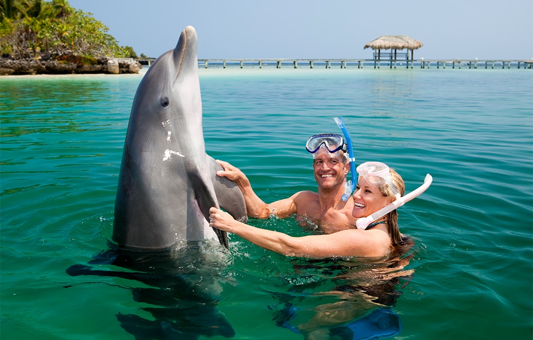 Schwimmen Sie mit verspielten Delfinen und faszinierenden Meerestieren im Dolphin Cove Negril. Ein unvergessliches Naturerlebnis, das Sie hautnah in seiner natürlichen karibischen Lagune erleben können.